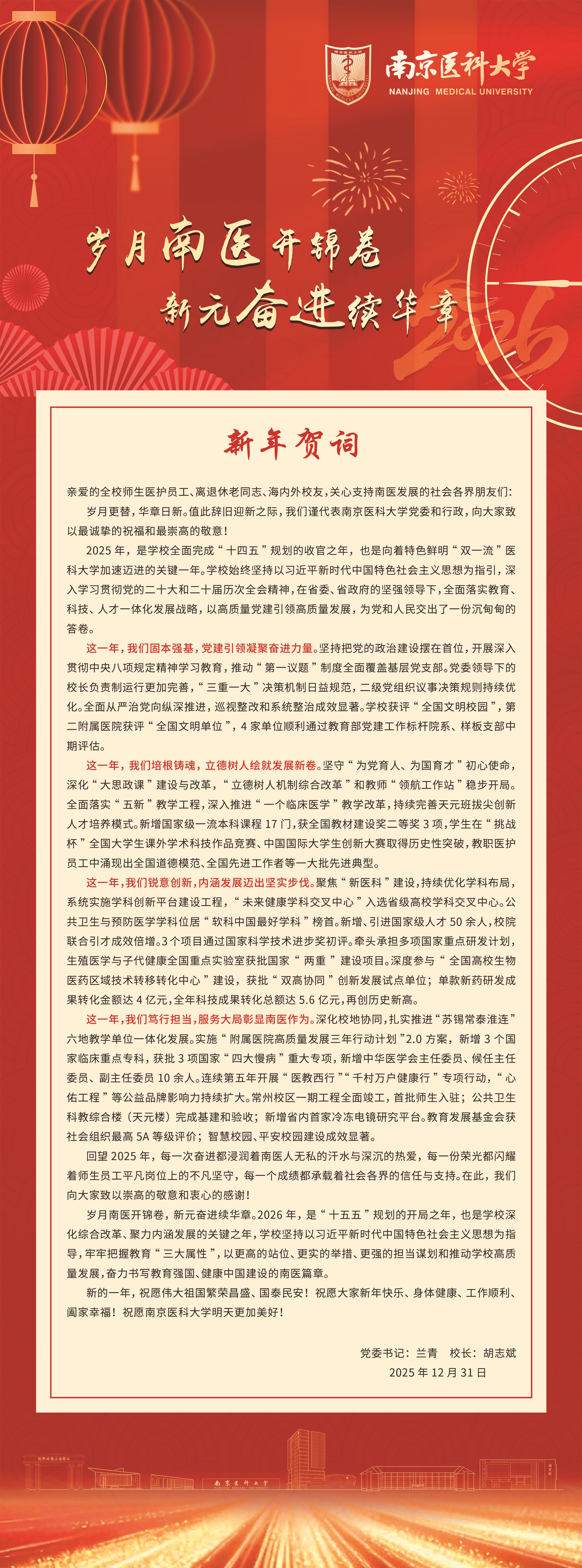 我校2026年新年贺词:岁月南医开锦卷 新元奋进续华章